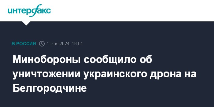 Москва. 1 мая. INTERFAX.RU - Российские военные в среду нейтрализовали украинский беспилотник над Белгородской областью, сообщило Минобороны РФ.