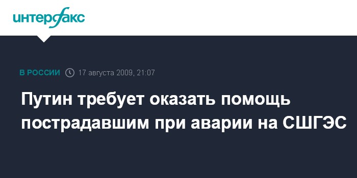 Москва. 17 августа. INTERFAX.RU - Премьер РФ Владимир Путин обратился к сотрудникам МЧС, работающим в Хакасии на ликвидации последствий аварии на Саяно-Шушенской ГЭС, с просьбой срочно оказать помощь пострадавшим при аварии и их семьям.
