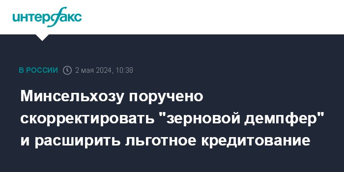 Минсельхозу поручено скорректировать "зерновой демпфер" и расширить льготное кредитование