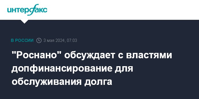 "Роснано" обсуждает с властями допфинансирование для обслуживания долга