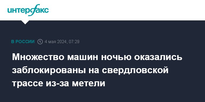 Москва. 4 мая. INTERFAX.RU - Снегопад накрыл Свердловскую область, в результате на федеральной трассе "Пермь-Екатеринбург" ночью автомобилисты оказались в "снежном плену", многим пришлось ночевать прямо на месте.