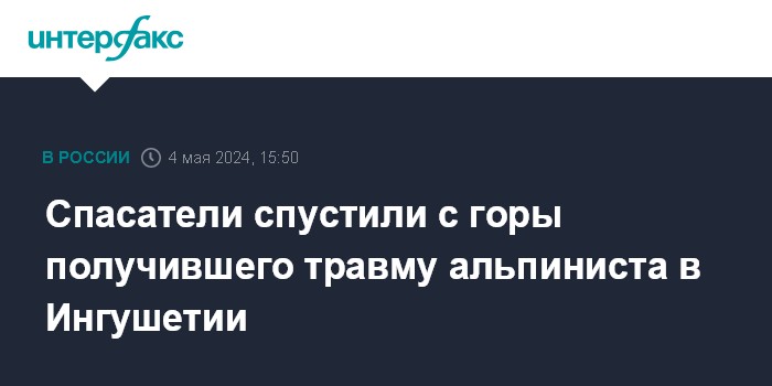 Москва. 4 мая. INTERFAX.RU - Спасатели эвакуировали с горы в Ингушетии альпиниста, повредившего ногу при восхождении на Цейлом, сообщает МЧС России.