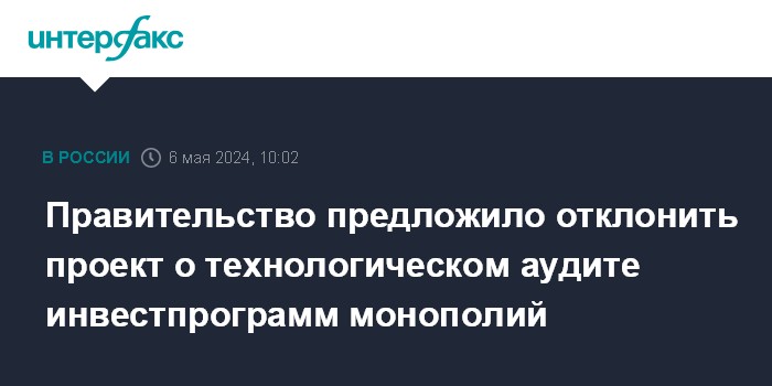 Правительство предложило отклонить проект о технологическом аудите инвестпрограмм монополий
