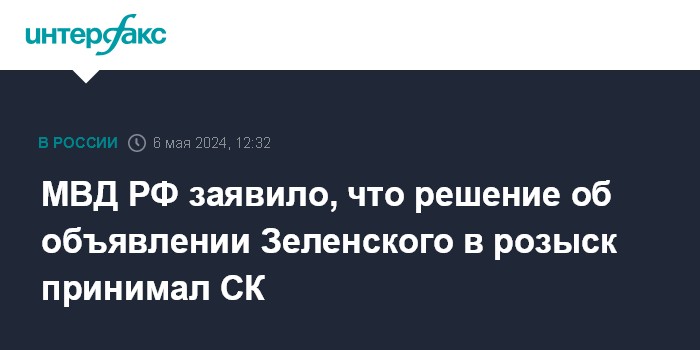 МВД РФ заявило, что решение об объявлении Зеленского в розыск принимал СК