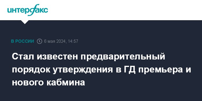 Стал известен предварительный порядок утверждения в ГД премьера и нового кабмина