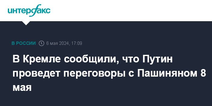 В Кремле сообщили, что Путин проведет переговоры с Пашиняном 8 мая