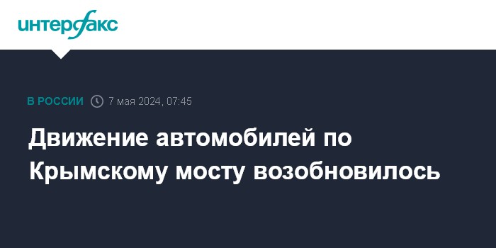 Москва. 7 мая. INTERFAX.RU - Проезд автомобилей по Крымскому мосту открыт во вторник утром после временной остановки, сообщает телеграм-канал, освещающий ситуацию на автомобильных подходах к мосту.