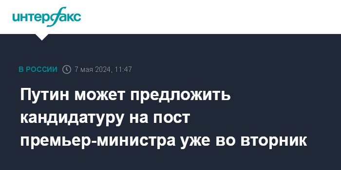 Путин может предложить кандидатуру на пост премьер-министра уже во вторник