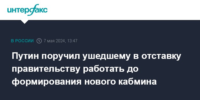 Москва. 7 мая. INTERFAX.RU - Президент РФ Владимир Путин поручил сложившему полномочия правительству продолжать действовать до формирования нового кабинета министров.