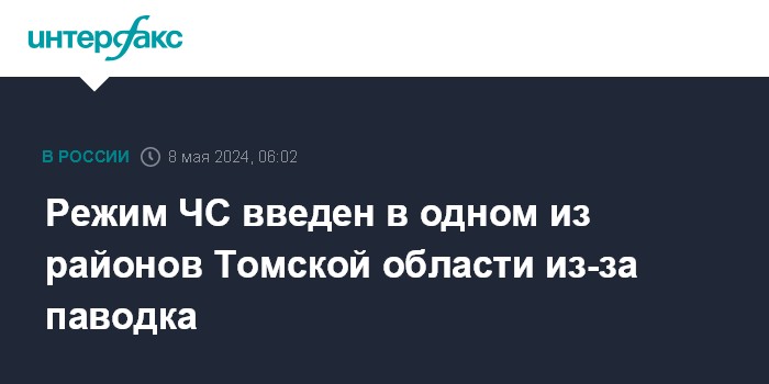 Москва. 8 мая. INTERFAX.RU - Глава Чаинского района Томской области Александр Костарев ввел режим чрезвычайной ситуации на территории трех сельских поселений, сообщил губернатор региона Владимир Мазур в своем телеграм-канале.