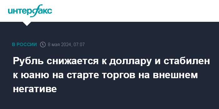 Рубль снижается к доллару и стабилен к юаню на старте торгов на внешнем негативе