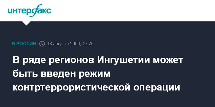 Москва. 18 августа. INTERFAX.RU – Глава кавказской комиссии, первый вице-спикер Совета Федерации Александр Торшин не исключает введения режима контртеррористической операции (КТО) в отдельных районах Ингушетии.
