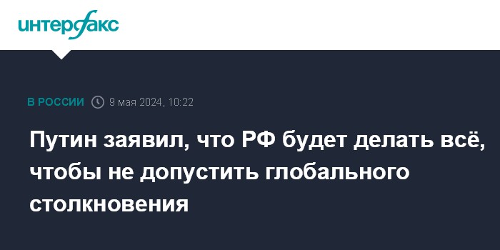Путин заявил, что РФ будет делать всё, чтобы не допустить глобального столкновения