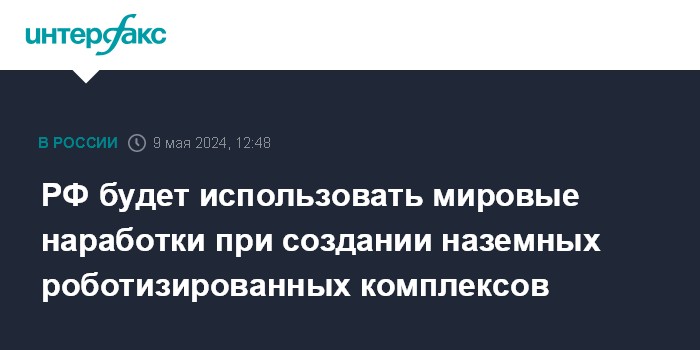 Москва. 9 мая. INTERFAX.RU - Россия будет использовать зарубежные наработки при создании наземных роботизированных комплексов, заявил президент РФ Владимир Путин.