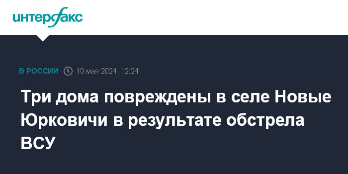 Москва. 10 мая. INTERFAX.RU - Губернатор Брянской области Александр Богомаз сообщил об обстреле со стороны Украины села Новые Юрковичи Климовского района.