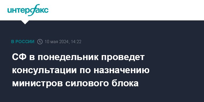 СФ в понедельник проведет консультации по назначению министров силового блока