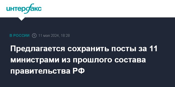 Предлагается сохранить посты за 11 министрами из прошлого состава правительства РФ