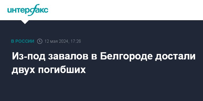 Москва. 12 мая. INTERFAX.RU - В Белгороде в результате обрушения подъезда дома погибли два человека, сообщает в воскресенье губернатор Белгородской области Вячеслав Гладков.