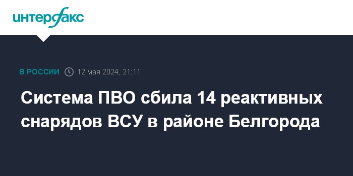 Система ПВО сбила 14 реактивных снарядов ВСУ в районе Белгорода