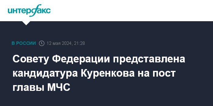 Совету Федерации представлена кандидатура Куренкова на пост главы МЧС