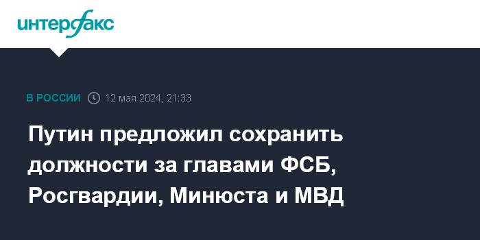 Путин предложил сохранить должности за главами ФСБ, Росгвардии, Минюста и МВД