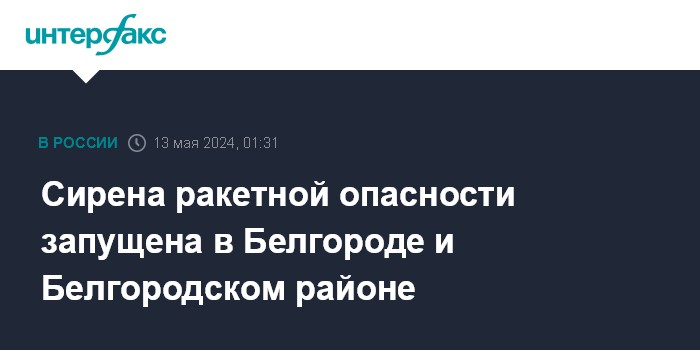 Москва. 13 мая. INTERFAX.RU - Губернатор Белгородской области Вячеслав Гладков сообщил об опасности ракетной атаки на территории Белгорода и пригорода в ночь на понедельник.