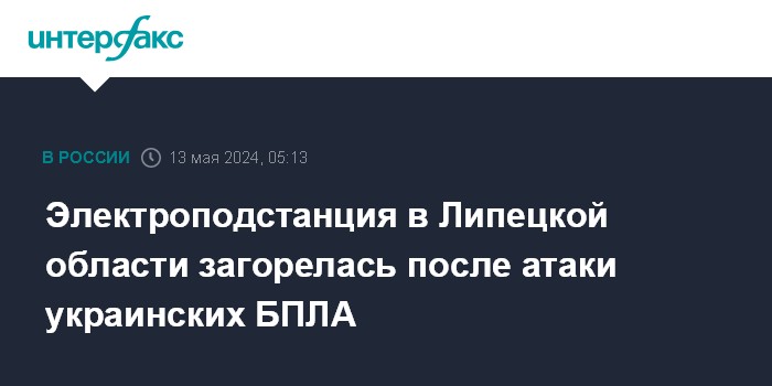 Москва. 13 мая. INTERFAX.RU - Губернатор Липецкой области Игорь Артамонов сообщил об атаке беспилотников ВСУ, в результате которой возник пожар на электроподстанции.