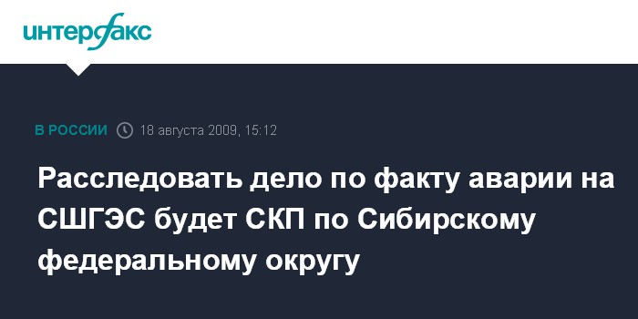 Москва. 18 августа. INTERFAX.RU - Уголовное дело по факту аварии на Саяно-Шушенской ГЭС передано в СКП по Сибирскому федеральному округу, сообщил "Интерфаксу" во вторник официальный представитель ведомства Владимир Маркин.