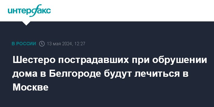 Шестеро пострадавших при обрушении дома в Белгороде будут лечиться в Москве