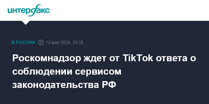 Москва. 13 мая. INTERFAX.RU - Роскомнадзор (РКН) после обращения "Ассоциации профессиональных пользователей соцсетей и мессенджеров" (АППСИМ) потребовал от платформы коротких видео TikTok предоставить информацию о соблюдении законодательства РФ, ответ пока не поступал, сообщили "Интерфаксу" в пресс-службе ведомства.
