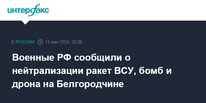 Военные РФ сообщили о нейтрализации ракет ВСУ, бомб и дрона на Белгородчине