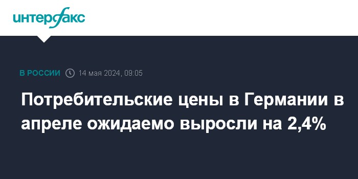 Потребительские цены в Германии в апреле ожидаемо выросли на 2,4%