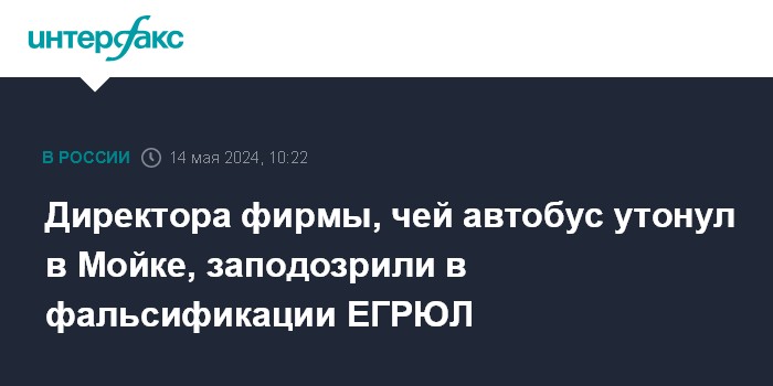 Директора фирмы, чей автобус утонул в Мойке, заподозрили в фальсификации ЕГРЮЛ