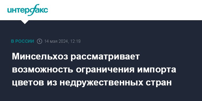 Минсельхоз рассматривает возможность ограничения импорта цветов из недружественных стран