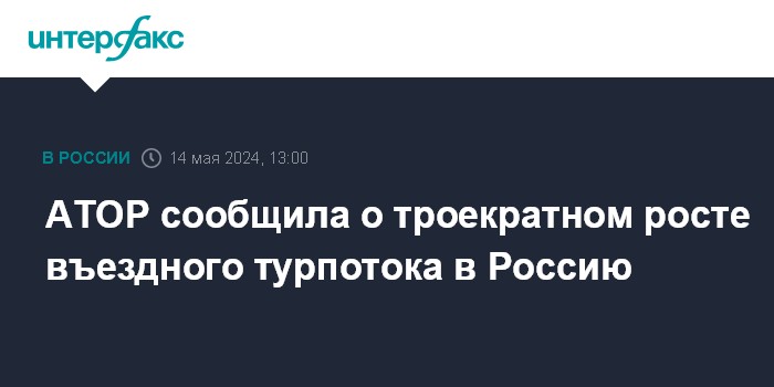 Москва. 14 мая. INTERFAX.RU - Число иностранных граждан, посетивших Россию с целью туризма в первом квартале 2024 года, выросло втрое в годовом исчислении, половину турпотока составили китайцы, сообщает Ассоциация туроператоров России (АТОР) со ссылкой на данные Погранслужбы ФСБ.