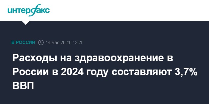 Расходы на здравоохранение в России в 2024 году составляют 3,7% ВВП