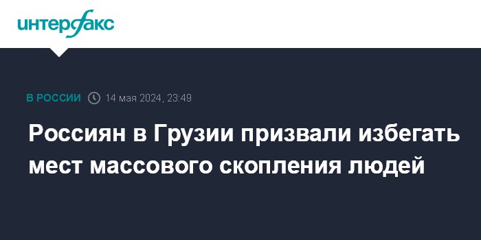 Москва. 14 мая. INTERFAX.RU - Секция интересов РФ при посольстве Швейцарии в Грузии обратилась к находящимся в стране российским гражданам с предупреждением на фоне протестов в Тбилиси против закона "О прозрачности иностранного влияния".