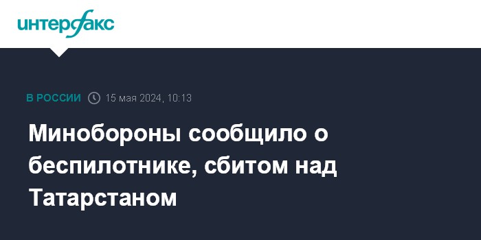 Москва. 15 мая. INTERFAX.RU - Российские военные около 07:30 нейтрализовали беспилотник самолетного типа над Татарстаном, заявили в Минобороны.