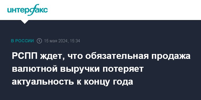 РСПП ждет, что обязательная продажа валютной выручки потеряет актуальность к концу года