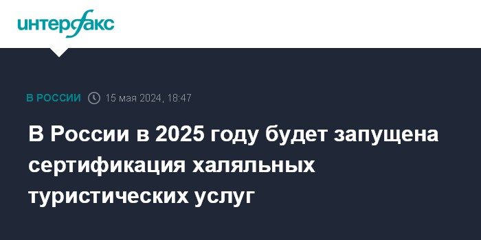 Москва. 15 мая. INTERFAX.RU - В России в 2025 году будет внедрена сертификация туристических услуг Халяль, сообщает в среду пресс-служба Росаккредитации.