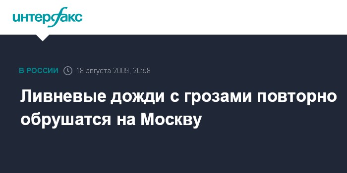 Ливневые дожди с грозами повторно обрушатся на Москву