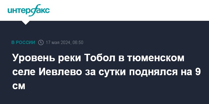 Москва. 17 мая. INTERFAX.RU - Уровень реки Тобол в минувшие сутки продолжал расти в одном из сел Ярковсого района Тюменской области, сообщает информационный центр регионального правительства в пятницу.