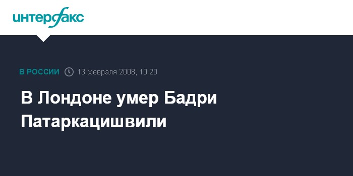 Тбилиси/Лондон. 13 февраля. INTERFAX.RU - Известный грузинский бизнесмен Бадри Патаркацишвили скончался вечером 12 февраля в Лондоне от сердечного приступа, сообщил "Интерфаксу" в среду его пресс-секретарь Гуга Квиташвили. Информацию о смерти Б.Патаркацишвили подтвердили "Интерфаксу" и в семье бизнесмена в Тбилиси. Там не стали комментировать причины смерти.
