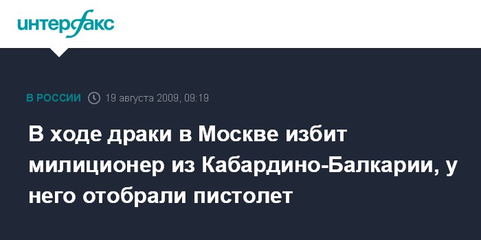 В ходе драки в Москве избит милиционер из Кабардино-Балкарии, у него отобрали пистолет