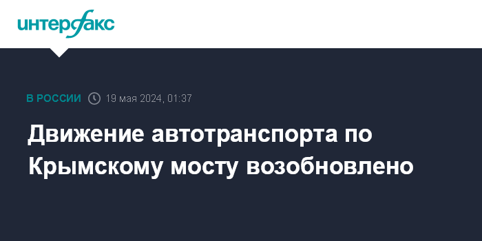 Москва. 19 мая. INTERFAX.RU - Проезд автомобилей по Крымскому мосту возобновлен, сообщил телеграм-канал, освещающий ситуацию на автомобильных подходах к мосту в ночь на воскресенье.