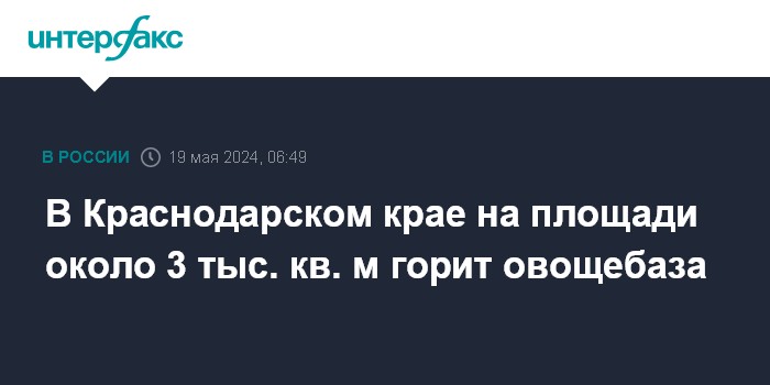 Москва. 19 мая. INTERFAX.RU - Специалисты МЧС РФ тушат крупный пожар на овощной базе в Краснодарском крае, сообщило ведомство в воскресенье утром.