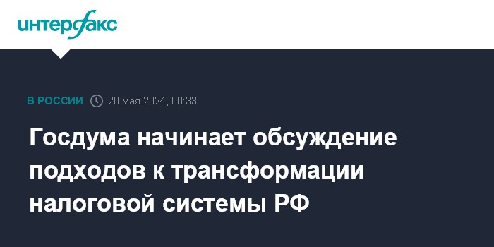 Госдума начинает обсуждение подходов к трансформации налоговой системы РФ
