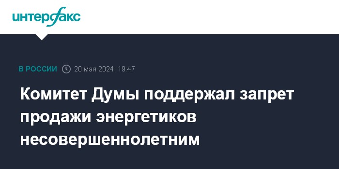 Москва. 20 мая. INTERFAX.RU - Комитет Госдумы по экономической политике поддержал законопроект о запрете розничной продажи безалкогольных энергетических напитков несовершеннолетним, следует из карточки законопроекта в базе данных парламента.