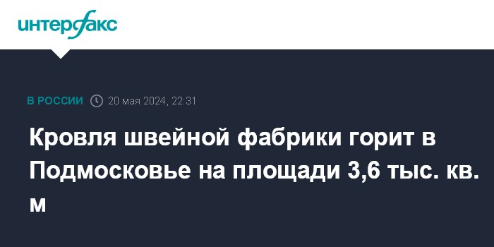 Кровля швейной фабрики горит в Подмосковье на площади 3,6 тыс. кв. м