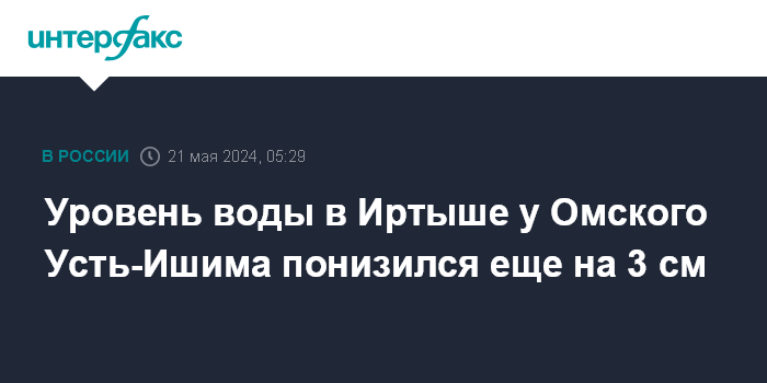 Москва. 21 мая. INTERFAX.RU - Снижение уровня воды в реках Иртыш и Ишим продолжается в пострадавшем от паводка Усть-Ишимском районе Омской области, сообщил губернатор региона Виталий Хоценко.